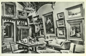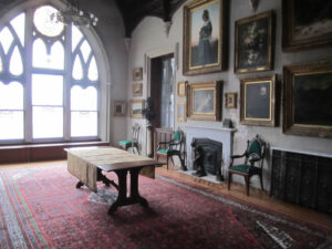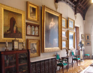 When the new replica frames and studio frame restoration projects were complete, Wilner sent an installation team to oversee the extensive re-hanging of pictures, maintaining the multi-tiered Victorian style of hanging that has been documented in photographs since the 1870s, and bringing many of the best works in the collection to eye level. The three storey picture gallery is the piece de resistance of Lyndhurst. The room is set with an extensive suite of Davis-designed furniture and a massive stained glass window overlooking the Hudson River that has been attributed to Louis Comfort Tiffany. The extensive collection of paintings was assembled by railroad baron Jay Gould and his daughters includes works by Gustave Courbet, Jean-Baptiste-Camille Corot, Theodore Rousseau, Charles Daubigny, Jean-Leon Gerome, Jean Beraud and Bouguereau.