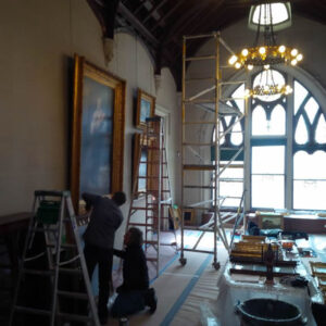 To begin the multi-faceted process of restoring The Picture Gallery, Eli Wilner & Company sent a team up to Tarrytown, NY for an on-site overview of the project with Lyndhurst’s Executive Director Howard Zar and the Preservation Manager Krsytyn Hastings-Silver. They had provided Wilner in advance with a list of the most critical items such as frames that sustained damage over time or paintings that had lost their original frames and had been in storage for years. During this visit, the Wilner team took extensive photographs and notes in order to create a proposal that would provide the maximum benefit to the total collection while taking into consideration a challenging time frame and budget limitations.