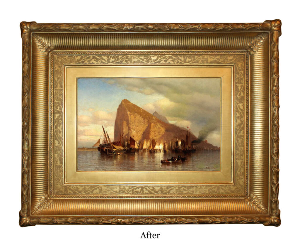 Finally, the original patination should be replicated where necessary throughout the regilded surfaces of the frame. If there is no trace of the original, it is best to refer to the characteristic treatment of contemporaneous examples.