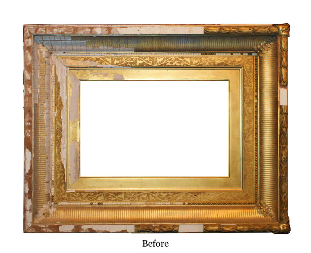 As with the restoration of paintings, sculpture and decorative objects, restoration of frames is best performed by experienced craftsmen who understand and respect the historic integrity of the object. It is not surprising then, that many of the processes used in frame conservation and frame restoration studios today are the same as those used for centuries. Hand carving and traditional water gilding methods allow for the faithful treatment of frames initially created using these same methods. Whether for museums, institutions or private collectors, the need for skilled frame restoration and conservation methods is more critical today than ever. As the connoisseurship of period frames continues, every framer has a responsibility to his clients to be aware of the many considerations in proper conservation and frame restoration.