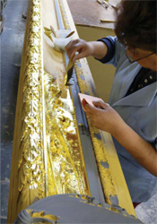 Inch by inch, the mile-plus of gold is burnished to the mirror that makes a well-leafed object appear to be cast of solid gold.